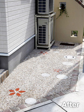 レンガで花柄を表現することことで、オリジナリティのある外構になりました。